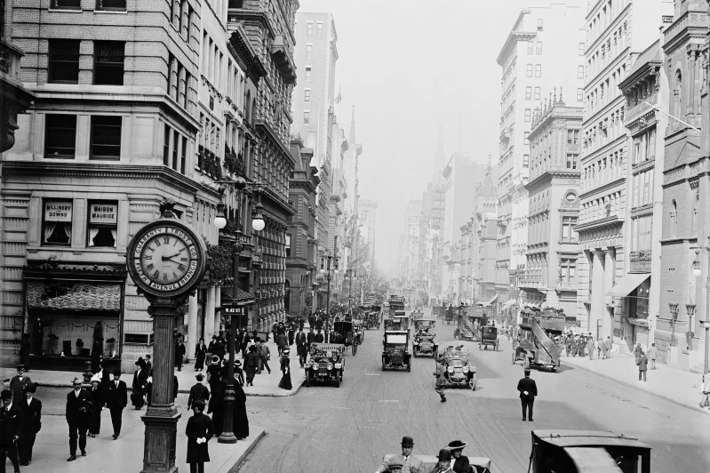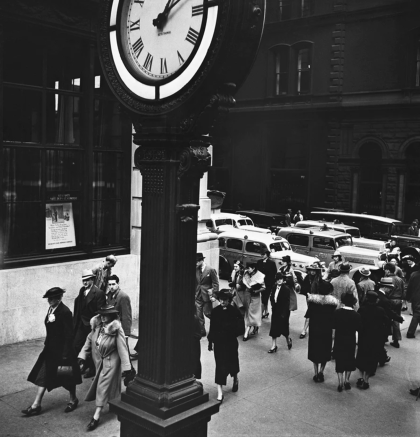 Manufactured in 1907 by the Seth Thomas Company, the large an art-deco black-and-white clock originally stood on Fifth Avenue and 43rd Street in front of the American Trust Company. But in the 1930s, it was moved one block north to its current location, in front of what was colloquially known as the Guaranty Trust Company building.