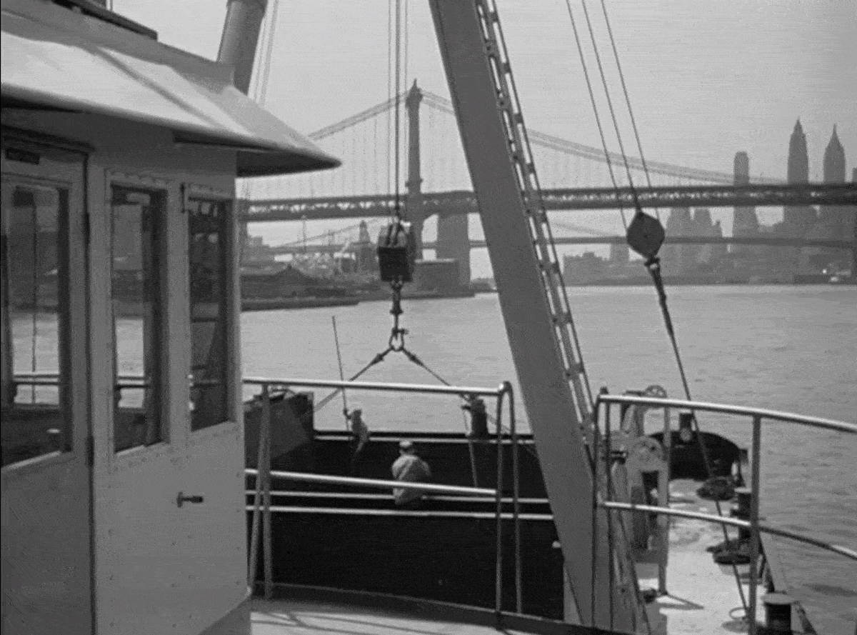 After I confirmed the Mary Murray was a ferry for Staten Island, I was confident this brief shot in Side Street took place at the original Whitehall Ferry Terminal in Manhattan. This was just a few years before the terminal was remodeled in 1953, and before it was completely rebuilt in the early 2000’s.