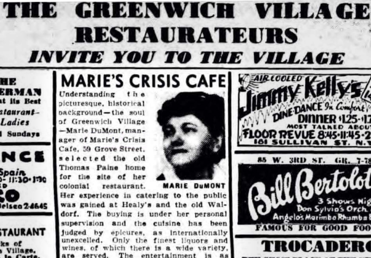 Owned and operated by Marie DuMont for nearly 40 years, Marie’s Crisis Cafe was eventually purchased by the current owners in 1972, who turned the space into a sing-along piano bar in which neighborhood gay men and musical theater performers have gathered over the decades to belt out show tunes.