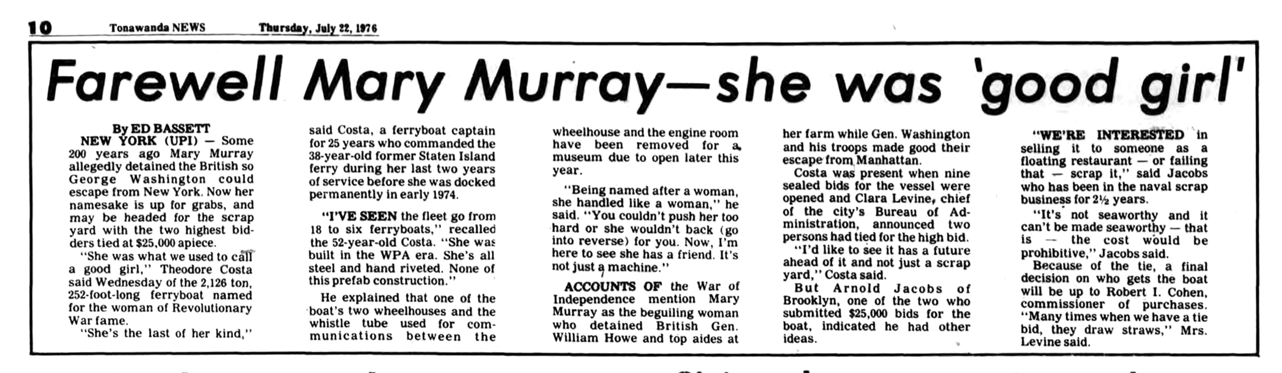 Figuring out this location wasn’t a major issue, as I assumed that this quick shot was of a Staten Island Ferry coming into the Whitehall Terminal in Manhattan. But just to be sure it wasn’t a shot of another commuter ferry line, I researched the name “Mary Murray,” which was painted on the bow of the boat, and found out it was, indeed, the name of a Staten Island ferry.