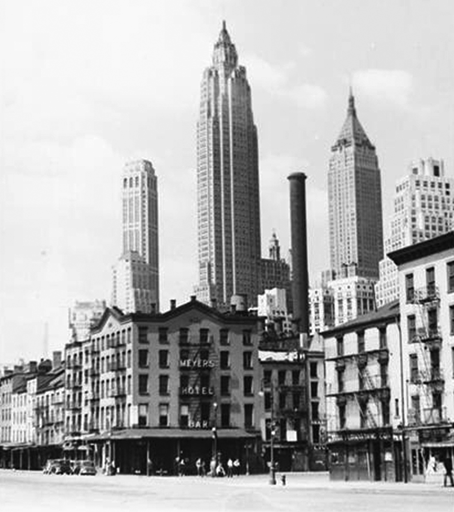 When I first began my hunt, I could tell this scene took place somewhere in lower Manhattan since you can see the Woolworth and David Dinkins Municipal Buildings from the roof, as well as the Brooklyn Bridge. Based on those landmarks, I approximated that they were somewhere between the Brooklyn and Manhattan Bridges on the Lower East Side