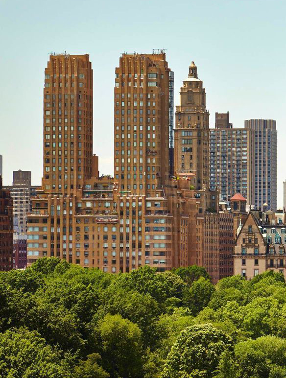 The location of the second shot with the people on horseback was also solved by using the skyscrapers on the horizon as a guide, in particular the Hampshire House at 150 Central Park South, with its distinctive steep copper roof and twin chimneys.