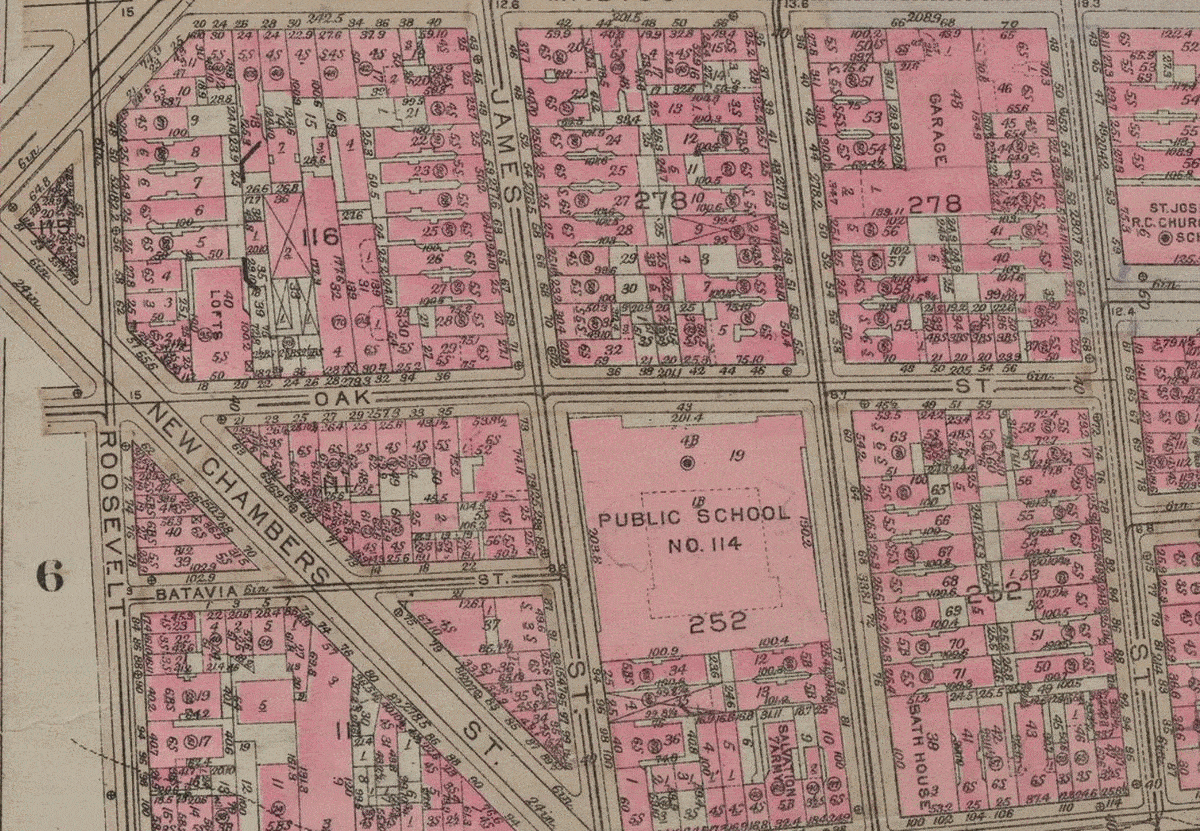 But still determined to solve this mystery, I surveyed a 1930 map of the neighborhood and eventually estimated that the building Joe entered was likely on James Street just south of Madison.,