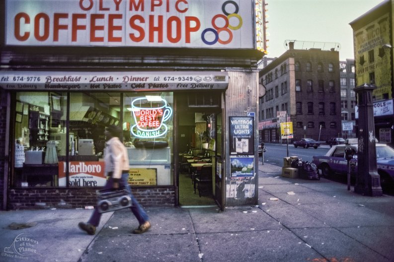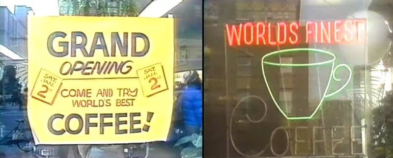 The other joke, which is a little more accessible, is with the world’s best cup of coffee. While the humor still works on its own, it’s even funnier knowing how common it used to be in New York for discount shops and eateries to make superlative claims without having to back it up.