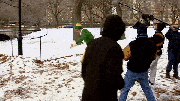 One of them goes by real quick as Santa tells Buddy about the Ray’s Pizza shops and which is the real one he should go to. This is a reference to the many different iterations of the name, such as “Ray’s Original Pizza,” “Famous Ray’s Pizza” and “World-Famous Original Ray’s Pizza,” all of which were independent from each other, but were trying to exploit the reputation of the first Ray’s Pizza shop on Prince Street in Little Italy.