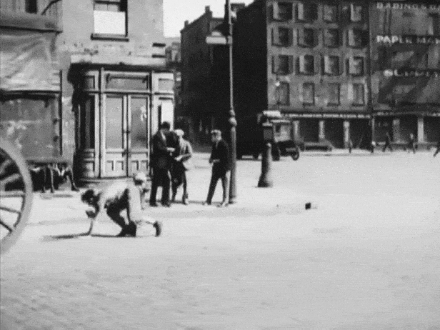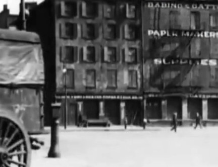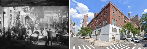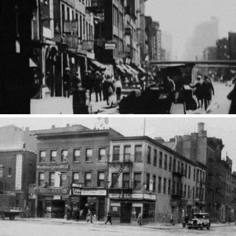 The block looked promising, and after going through the NYPL Digital Collection, I discovered a 1932 photograph of a three-way intersection of New Chambers, Cherry and James Street that was a match. Amazingly, it was taken at almost the exact same angle as the film, giving us definitive proof of the location used.