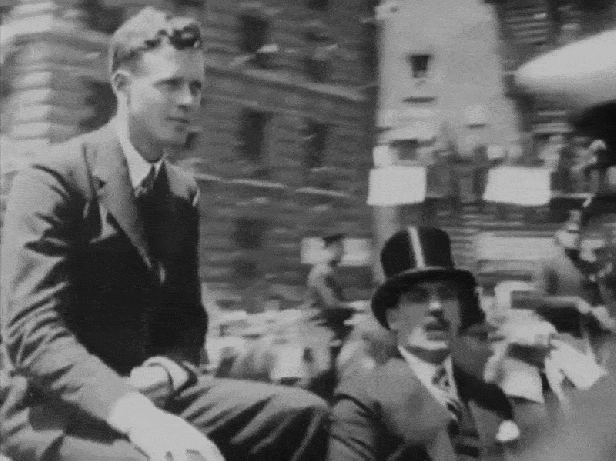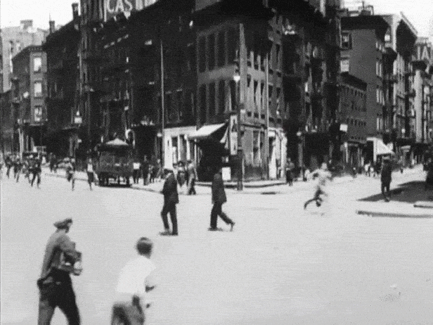 Since New York’s ticker-tape parades were always staged along the south end of Broadway, I knew roughly where to start looking, and quickly recognized Trinity Church in one of the shots (seen in the 2nd image above). And even though it wasn’t officially on Broadway, I was almost certain the building in the 1st image was the Whitehall Building on the nearby Battery Place. I recognized the building’s windows from the Harold Lloyd movie, Speedy, where his horse-drawn trolly crashes into a pole not far from it.