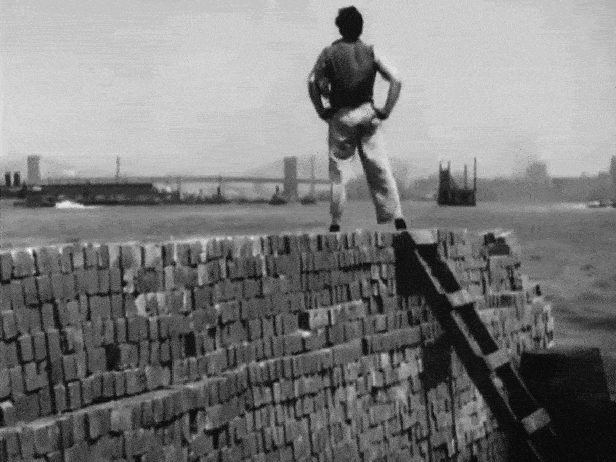 This was literally a four-second shot of a building superimposed onto a brick being held by the John Breen character, but I still wanted to identify it. Although, I almost immediately guessed that it was the New York Telephone Company Building (now called the Verizon Building) at 140 West Street, mostly because I had recently studied the location for another film shot in NYC — 1929’s Applause.