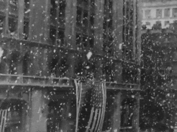 I was fairly certain these shots of the parade were stock news footage that were simply edited into the film, but I was still interested in identifying where they took place.