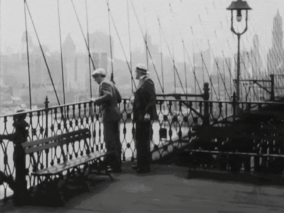 The fact Allan Dwan was integrating 1927 news footage into a film that was being released that same year shows how fast and nimble of a director he was. By bringing current events into the story —like the Lindbergh footage in this scene and an image of the newly-constructed New York Telephone Building in an earlier scene— he undoubtedly made the film feel more fresh and contemporary to audiences. Another example of this is in the last scene of the film which features a skyscraper that was a big news story only a few months before East Side, West Side was released to theaters. (See “On a Balcony” below.)