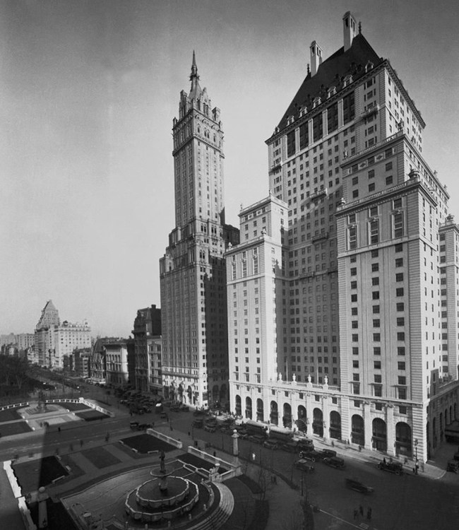 Eventually, I came across the Sherry-Netherland Hotel on Fifth Avenue (est. 1927), which looked like a match, and to my utmost surprise, is still standing today. I was surprised because a lot of these early Beaux-Arts skyscrapers have met with the wrecking ball over the years, such as the Sherry-Netherland’s southern neighbor, the Savoy-Plaza Hotel (also est. 1927), which was demolished in late-1965 to make way for the General Motors Building.
