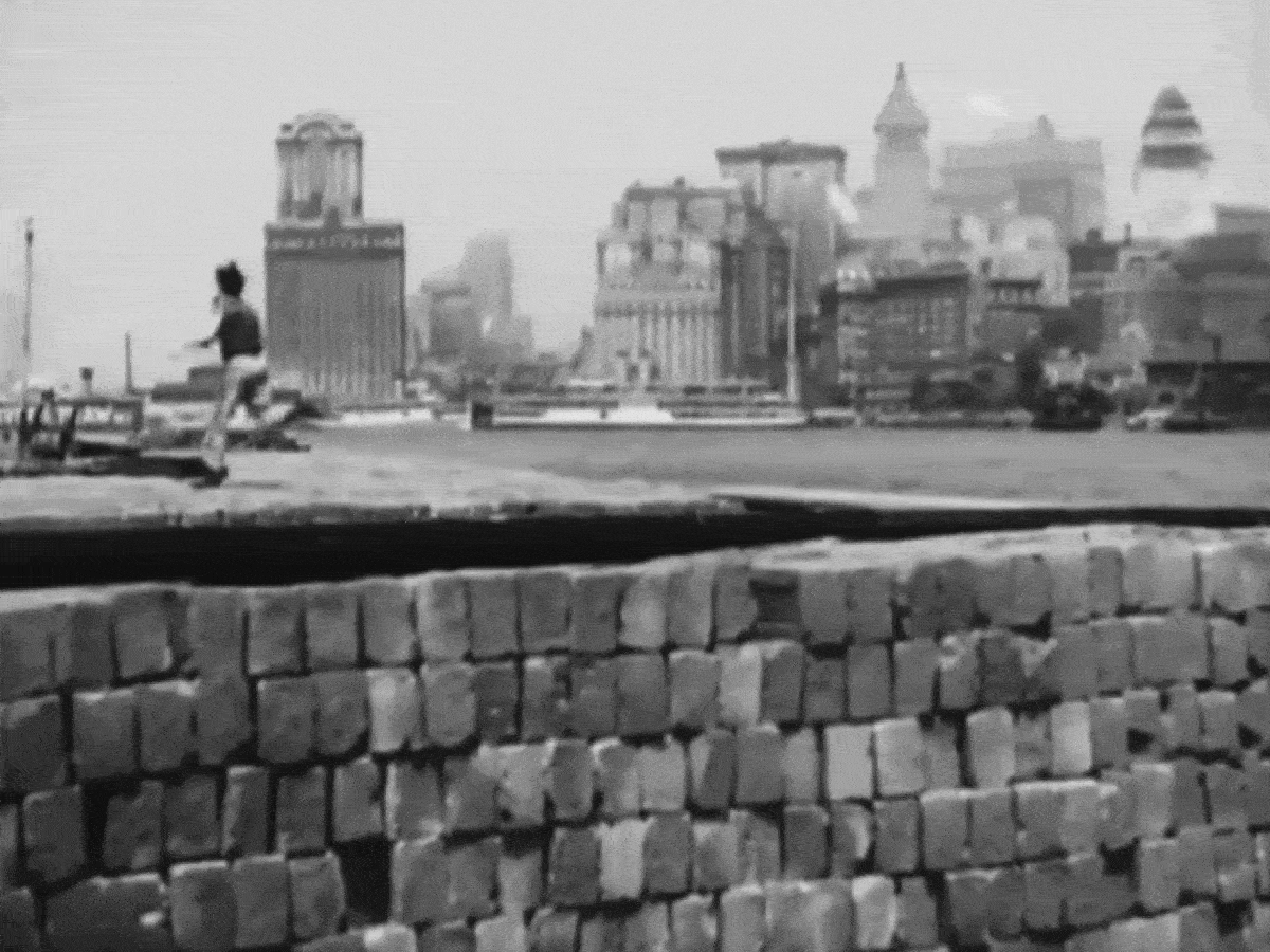 Figuring out what part of Manhattan is being shown in wide skyline shots is usually pretty easy since you have big, obvious landmarks to work from. And with the Brooklyn Bridge in the foreground, I was able to instantly identify these opening shots from the film.