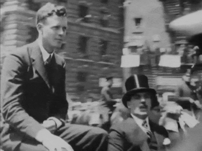 Since New York’s ticker-tape parades were always staged along the south end of Broadway, I knew roughly where to start looking, and quickly recognized Trinity Church in one of the shots (seen in the 2nd image above). And even though it wasn’t officially on Broadway, I was almost certain the building in the 1st image was the Whitehall Building on the nearby Battery Place. I recognized the building’s windows from the Harold Lloyd movie, Speedy, where his horse-drawn trolly crashes into a pole not far from it.