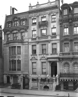 According to the exhaustive website, daytoninmanhattan, the brownstone townhouse got a major make-over in 1902, receiving an entirely new façade. The remodeled mansion became encased in a stylish limestone with an exuberant number of classical details —many of which are still present today— and was surrounded by ornate ironwork. In 1936, the single-family home was restructured, in which it was divided into eight separate apartments with a doctor’s office on the basement level. Seventy years later, the inside got restructured again, but the building has remained divided into several rental properties, with a doctor’s office still in the basement. Amazingly, the exterior of this impressive house has hardly changed since the 1902 renovations, and looks about the same as it did in this 1949 film.