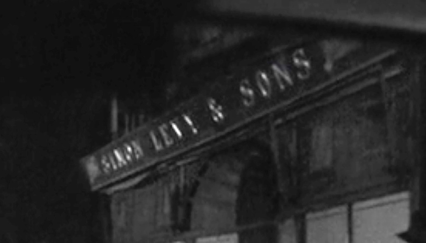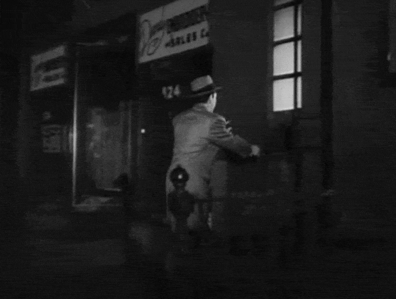 With such a dark location, I thought finding it might be a bit of a difficult task, and it seemed like the only clue to go on was what looked like an elevated train in the distance. But fortunately, at the very end of this sequence, the camera pans to a neighboring building that had a store sign above it. The sign looked authentic (not set-dressing), and after boosting up the brightness and contrast, it looked like it said, “SIMON LEVY & SONS.” In an attempt to avoid a trip to the library to look up the name in an old phone directory, I first tried to do an online search. In my first attempt, I Googled the name using the ampersand as it appeared on the sign, but that gave me nothing. So I tried again, but instead spelled out the word, “and,” and that got me two hits on the newspaper.com website. However, since the site uses OCR (optical character recognition) to convert the newspaper print into searchable, encoded text, there are often flaws in the transcription. So when it came to the address of “Simon Levy and Sons,” both pages on newspaper.com gave jumbled results. For example, one of them listed the address as, “IJO EAST BROADWAY.” Even though the number was jumbled, I now had a street name. So, I did another Google search for the store name, along with the phrase, “East Broadway.” Surprisingly, I got two completely new hits, and one of them had a high-resolution scan of a 1946 issue of The Brooklyn Daily Eagle, which included an ad for Simon Levy and Sons on 120 East Broadway. After looking at the location in Google Street View, I determined that the building Conte went into was 124 East Broadway. I also realized that the elevated train that can be seen in the beginning of this sequence was the F Train running along the Manhattan Bridge, whose overpass crosses East Broadway one block away. As a side note, in between 120 and 124 East Broadway is a small alley which would be used nearly 30 years later as the place Clark Kent and Lois Lane get mugged in 1978’s Superman: The Movie.