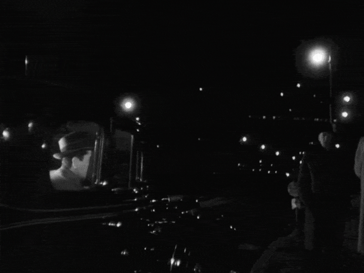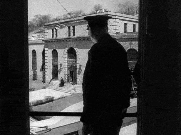 This short exterior shot of Sing Sing Prison in Upstate New York was actually lifted from the 1947 noir-film, Kiss of Death, which was produced by the same studio — 20th Century Fox. It’s actually a nicely composed shot from director Henry Hathaway and cinematographer Norbert Brodine, taken from inside a guard tower near the rear entrance.