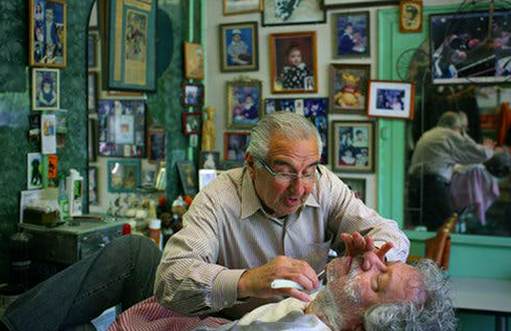 Claudio Caponigro gives a traditional shave at his E 116th Street shop of over 60 years, late 2011