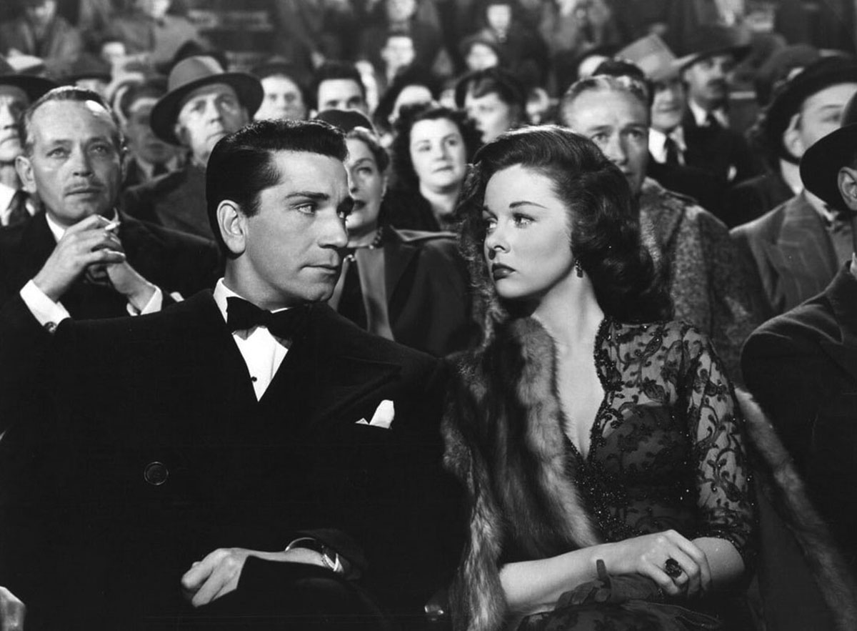 Max, played by Richard Conte, poses with his fiancée Maria, played by Debra Paget (who was only 15 at the time of filming and is currently the only living cast member from the motion picture).