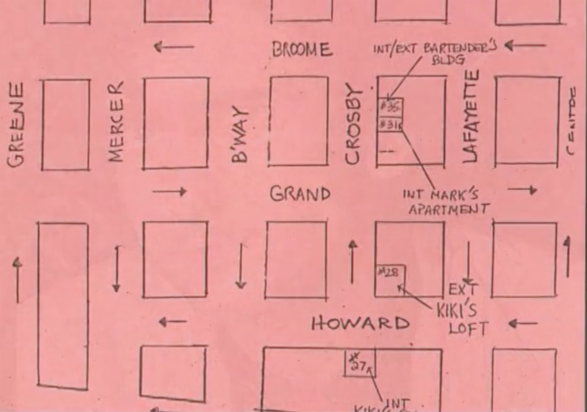 I stumbled upon this location while I was researching the correct location of Tom’s apartment building. Turns out they were pretty much right next-door to each other. Once again, after unearthing the map used by production, I could see it listed the apartment as 31 Crosby St., confirming my findings. And as an added bonus, the map also revealed the character’s name (which was was never given in the film) to be Mark.