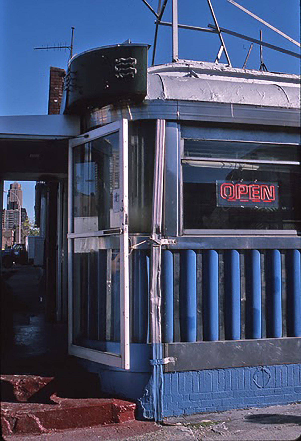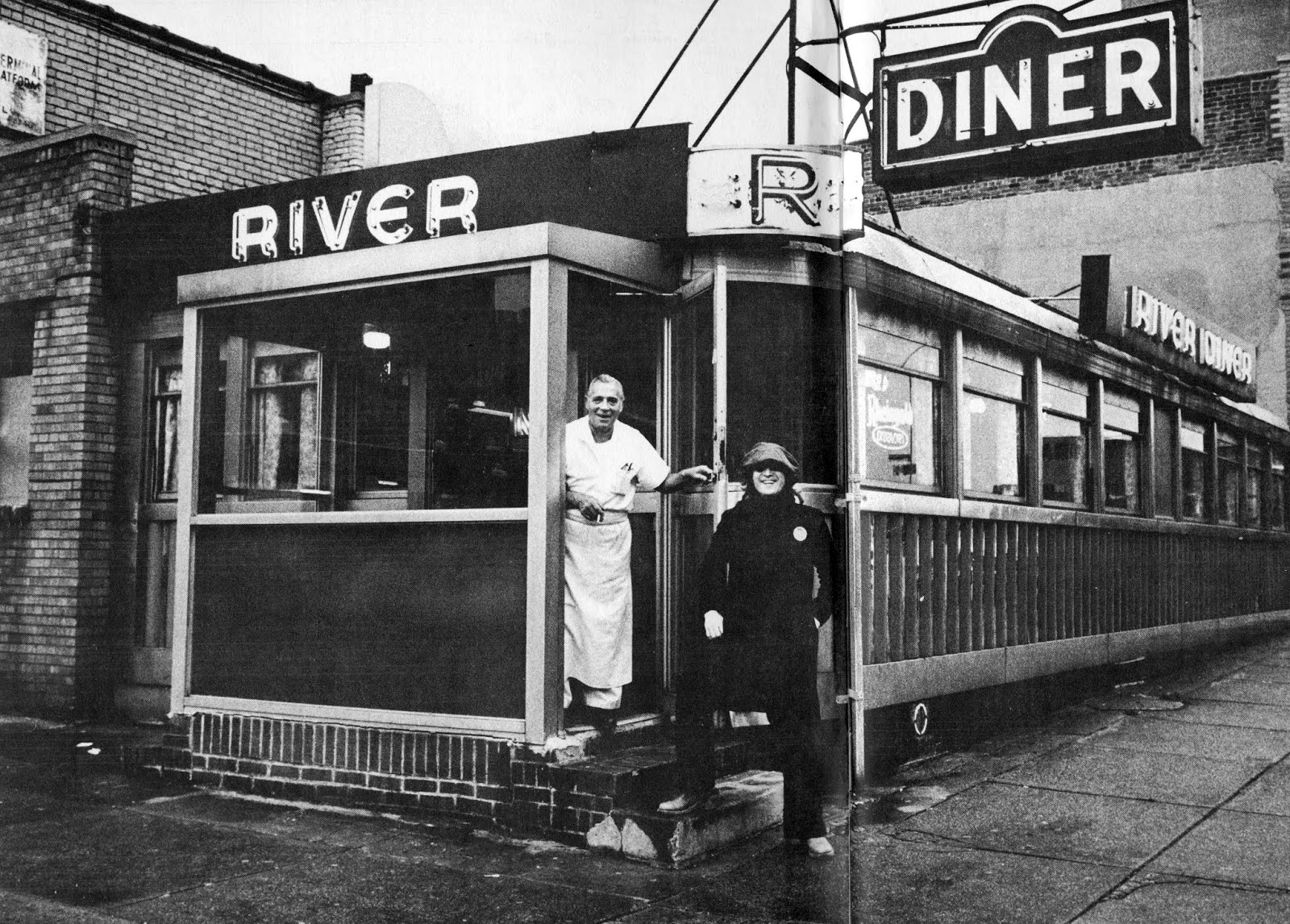 In the 1960s and 70s, the River Diner served mostly blue-collar men who worked in the predominately industrial area. But by the 1980s, the neighborhood had started to become a home-base for the prostitution trade, and the diner’s business started to suffer. Owner Kyriakos (Charlie) Hristidis complained, ”The big problem came because Mayor Beame started to clean up 42nd Street, Times Square, and that sent the girls down here. You understand? The neighborhood got very bad. Business went down.” However, things started looking more promising with the construction of the $486 million Jacob K. Javits Convention Center, which opened in April of 1986, right across the street from the modest one-story restaurant. Hristidis viewed the gigantic glass center as a much-needed miracle, describing it as ”a wondrous crystal palace that has set down like magic in my grimy neighborhood.” Incredibly, he turned down million-dollar offers to take over his lease and convert the space into some sort of multi-story bar/lounge. The middle-aged Greek immigrant was determined to hold onto his diner and refused to make it “fancier” for the new convention trade — a resolute decision that made him something of a folk hero to the regulars from the neighborhood. They appreciated his desire to keep the place authentic. And it was this down-to-earth quality that helped make the River Diner such an interesting backdrop for movies like After Hours and 1981’s Tattoo. The chrome exterior was also featured in a photograph of John Lennon, taken by David Gahr during a 1974 magazine shoot. (The image of the diner was never used in the magazine, but eventually got published 30 years later in a retrospective article for Mojo Magazine.)
