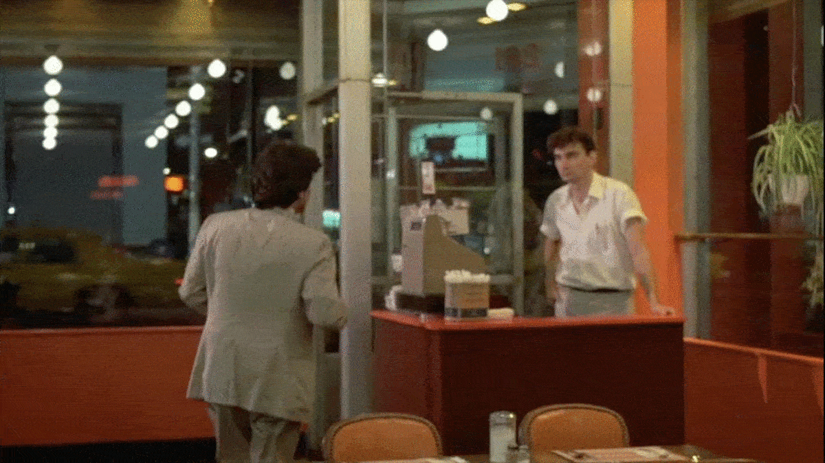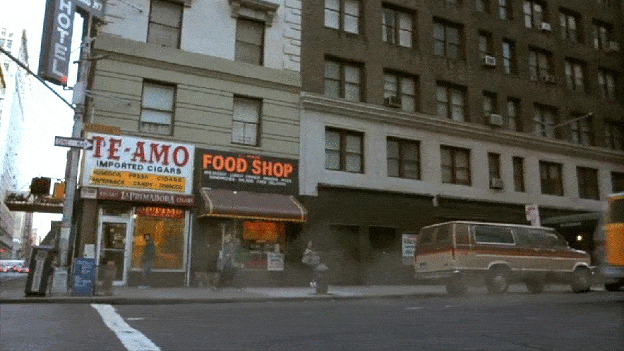 The fact that the geography of the van’s progress is a sort of mixed-up and a fake street sign was used outside the Metropolitan Life North Building is a little unusual for a Martin Scorsese movie. The NYC-born director is usually insistent on making sure the geography in his films is accurate. In the Taxi Driver DVD audio commentary, Scorsese talked about how he was particularly focused on trying to keep all the action consistent, so it would seem believable to any New Yorkers watching the film. He specifically talked about how he would never use two different locations during one continuous sequence.