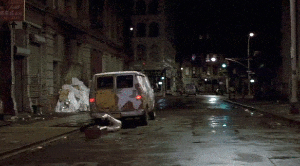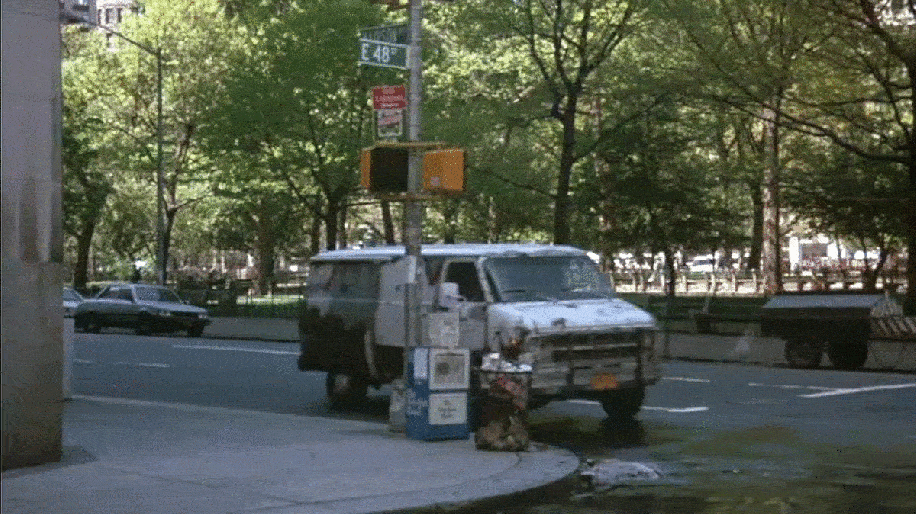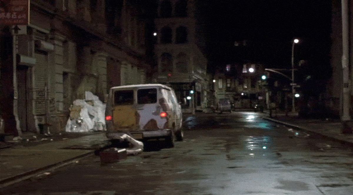 Neil and Pepe drop the statue and TV and speed off in their van towards Broadway.