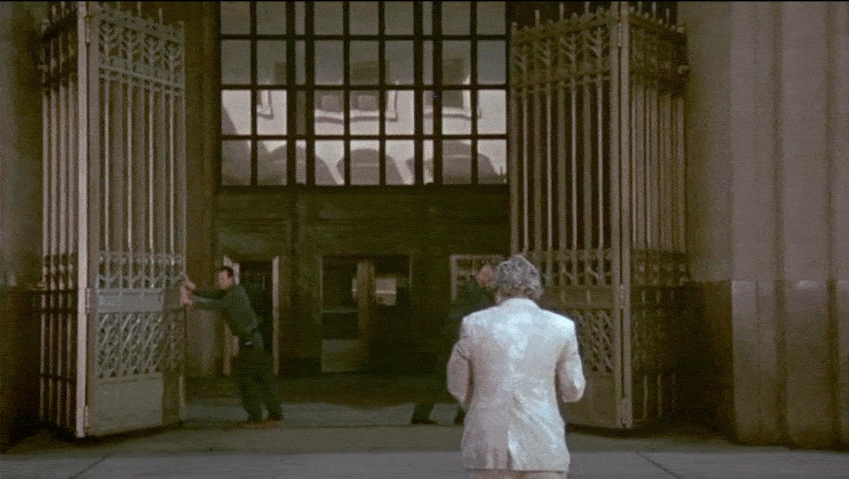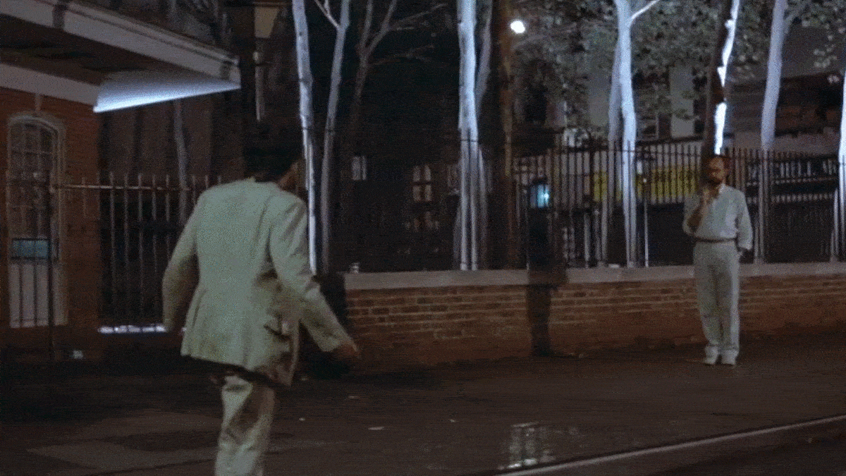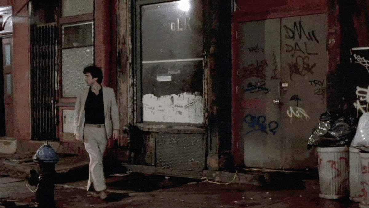 According to Scorsese, when they were filming the part where Paul screams up into the heavens, one of the residents on Howard Street yelled out, “Is this gonna go on all night!?! Don’t tell me this is going to go on all night!” In response, the director reassured the unseen person that they were only going to do one or two more takes. After I figured out the details of this filming location, I wondered whether that angry Gothamite was Christo, or his wife and collaborator, Jeanne-Claude.