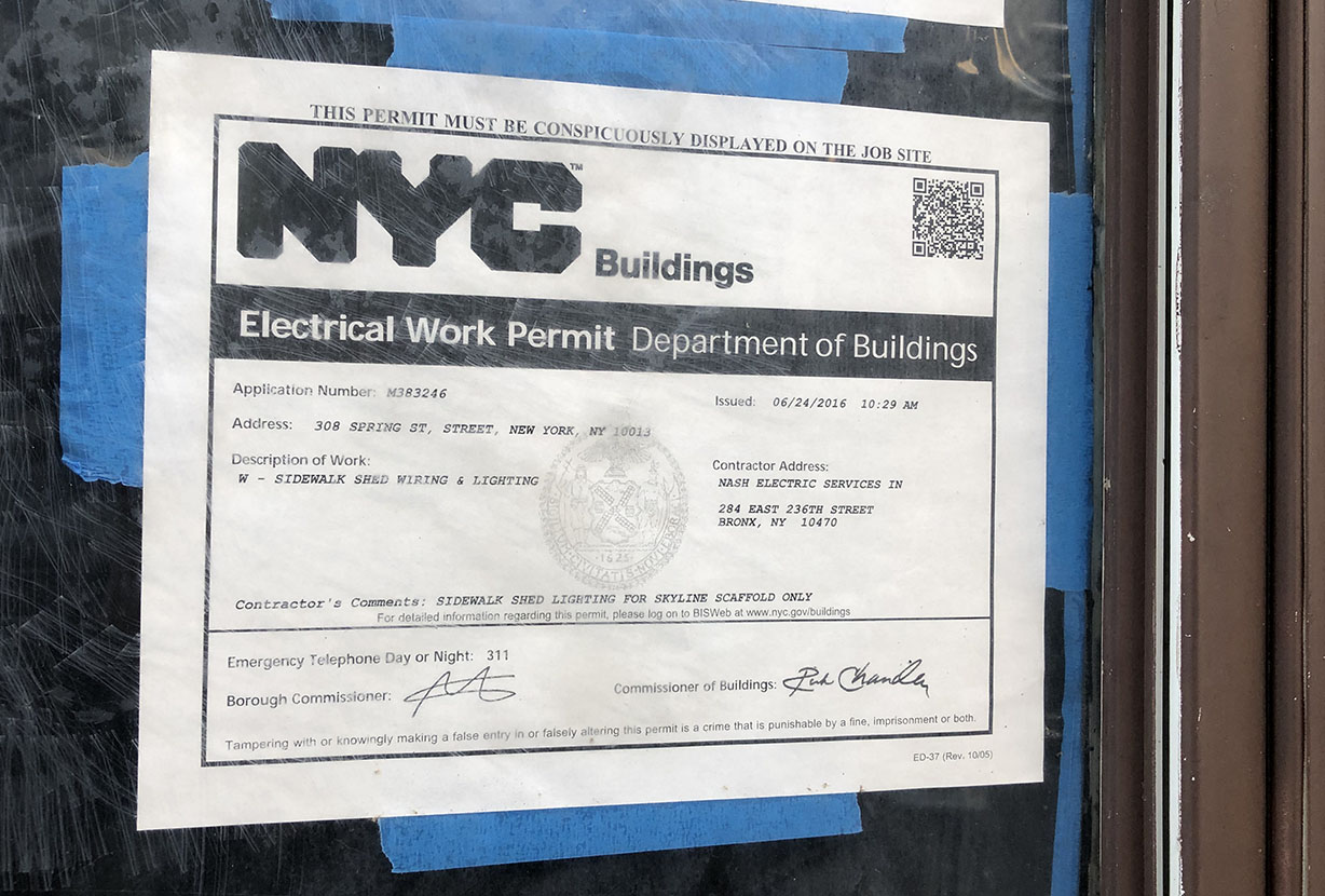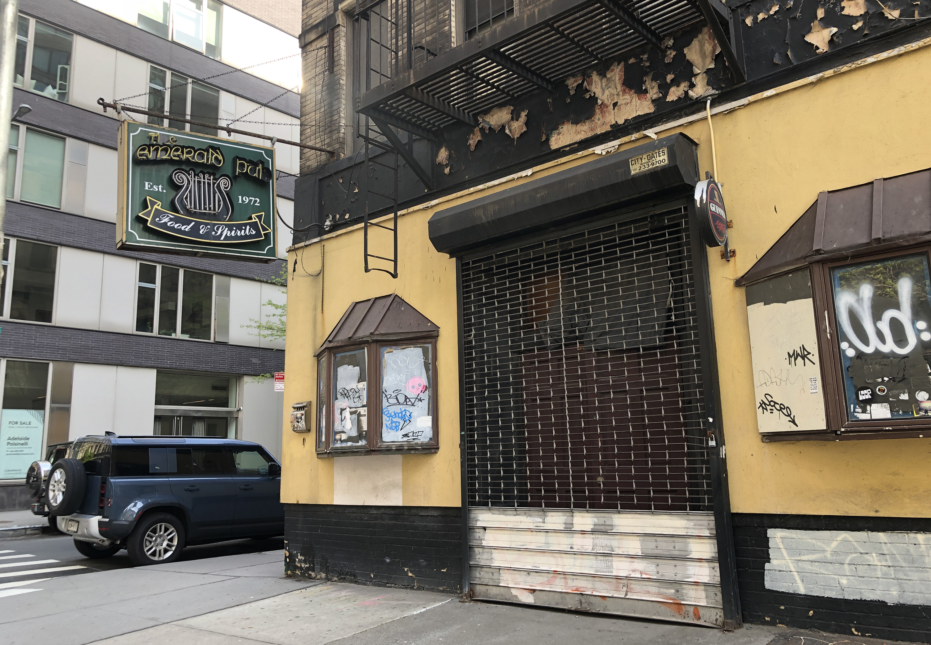 In business since 1972, the Emerald Pub finally shuttered for good in the spring of 2015 due to rising rent prices which had already spread around the neighborhood. At the time of its closure, much of that block had already been revamped to bring in trendier, more upscale clientele. But things seemed to have been stalled at 308 Spring Street. It’s been over five years since the Irish tavern closed down, and there’s still no sign of activity inside the space. (All the posted permits date back to 2016-17 without any updates.) Even the Emerald Pub’s ornate neon sign remains above the door today, giving some passersby the misguided hope that they are still open for business. But to honest, every time I see that the sign’s still hanging, I fantasize that maybe the new owners have backed out and the former owners of the Emerald Pub are allowed to move back in and reopen it. As of the summer of 2024: The retail space is still vacant, with Emerald Pub signage still affixed to the building.