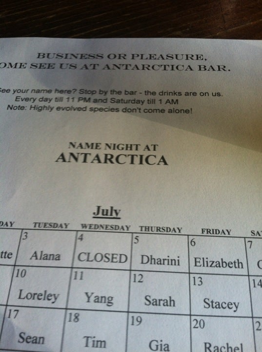 Even though it was about a 15-minute hike from my Perry Street Apartment, my friend David and I would go to Antartica on a regular basis because it was very spacious, had a decent pool table with plenty of elbow room, had a cute and friendly bartender, and amazingly served all their mixed drinks in pint-sized glasses. Granted, I think the cocktails were a little watered down, but you still ended up getting more booze for your buck. Another great feature of the bar was their “Name Night,” where if your first name matched the daily selection, you drank for free from 5-11PM. They even printed out a monthly calendar so you would know ahead of time what name was going to be selected. (Unfortunately I was never able to take advantage of Name Night since my first name is CLOSED.) Naturally, the fate of Antarctica was the same as the Emerald pub, closing its doors in 2013. The space was taken over in 2016 by Adoro Lei, an upscale Italian restaurant that prides itself for offering “an elevated pizza-eating experience” (with no pint-sized cocktails).