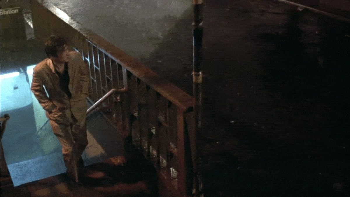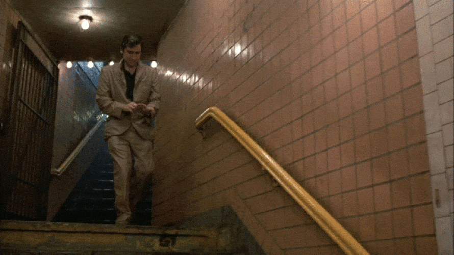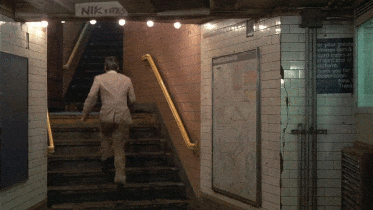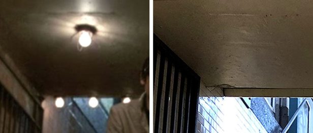 Also, it seems like the basic layout of the 32nd street entrance matches what’s in the film. But there obviously has been some renovations to the station since 1984, and I couldn’t really find any specific elements that are exactly the same. The only thing that seemed like it could be a match was the light on the ceiling in the stairwell. Even though the single-bulb light fixture is gone today, you can still see faint remnants of it underneath the plaster. Since I couldn’t find any specific elements at the station that have survived from 1984, I cannot call this location a 100% confirmation, but with that unique R-code on the token booth and a matching layout at the entrance, I’m at a solid 95%.