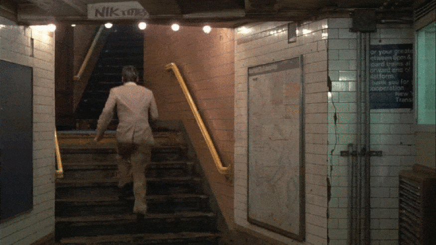 The action jumps back to SoHo, where Paul exits the Spring Street Station at Lafayette Street.