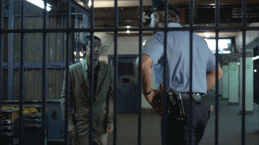 Desperate, Paul jumps the turnstile, but is immediately stopped by a large transit cop.