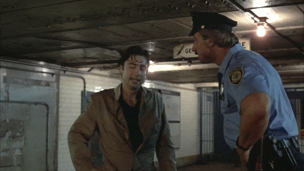 Paul nervously apologizes to the cop, trying to explain that he has no money and didn’t know the subway fare went up at midnight.