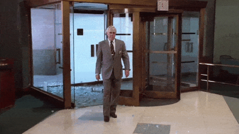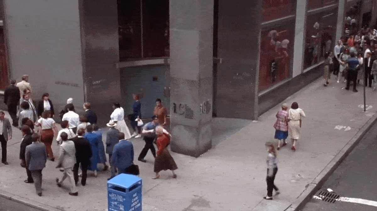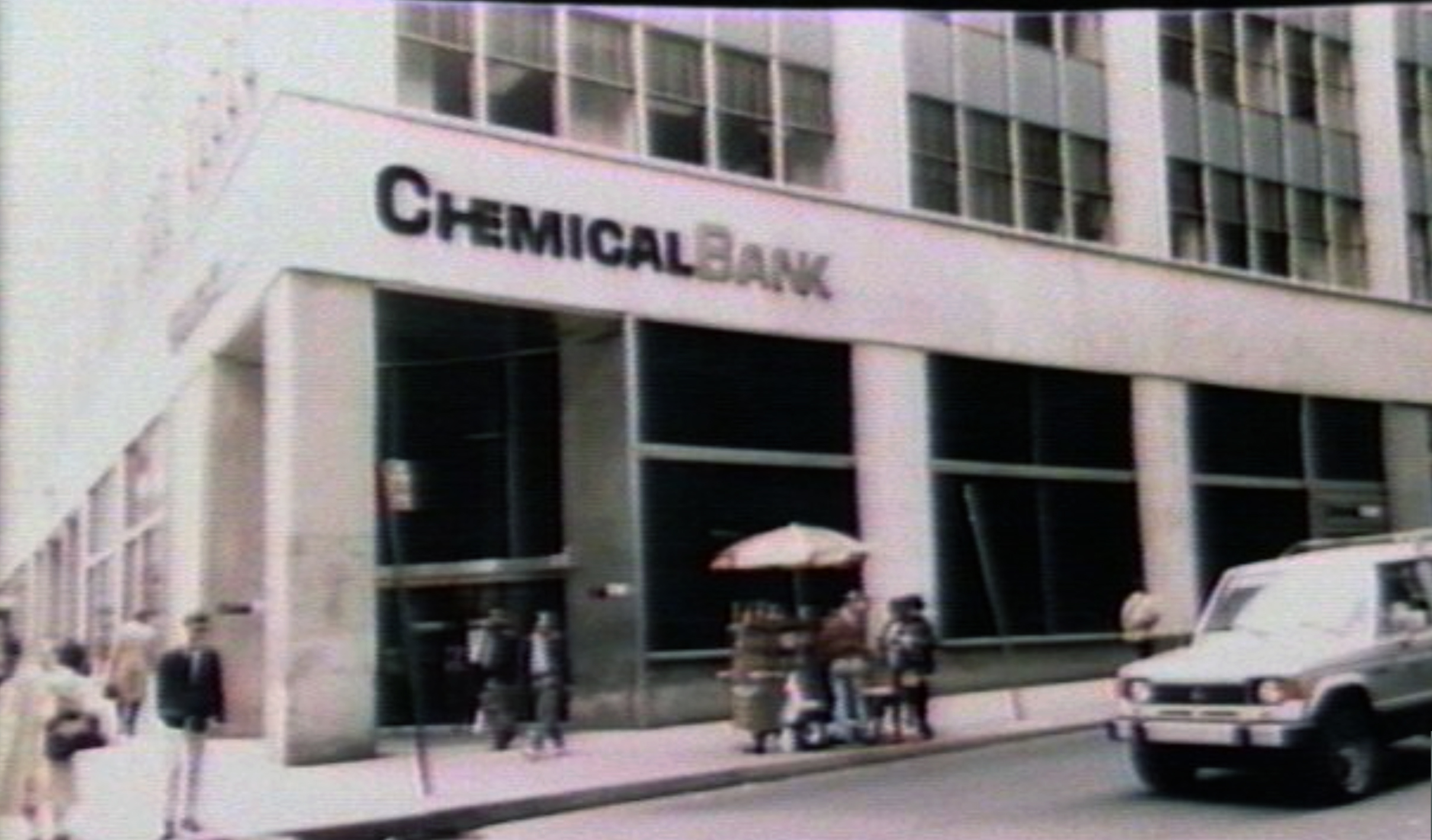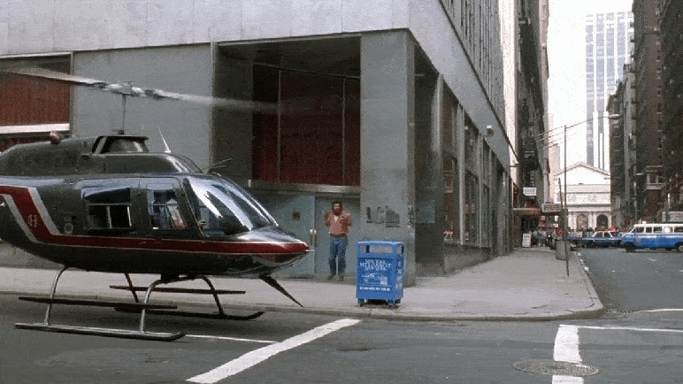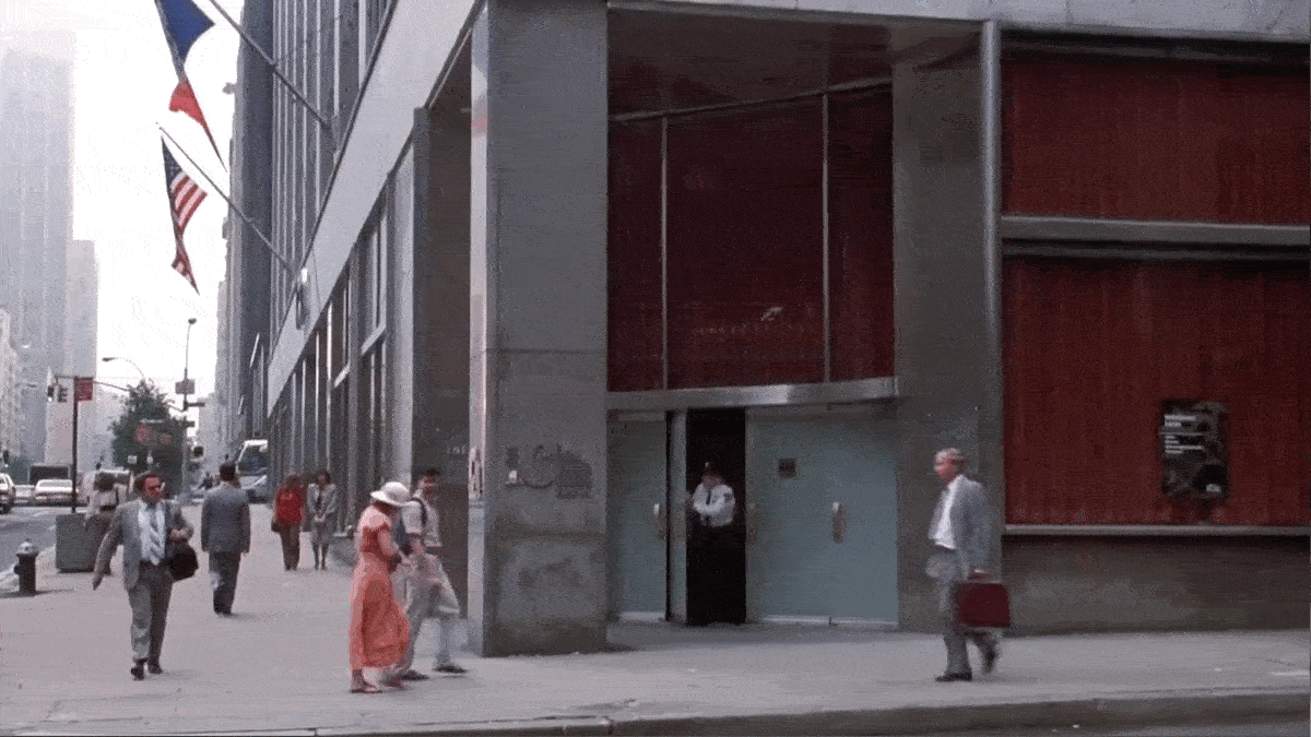 Normally, a set like this would be built on a soundstage, but as far as I can tell, this production wasn’t based at any official studio spaces (which were already scarce in New York in the 80s). So my guess is that they built this bank in some large industrial/retail space that was empty at the time, which very well could’ve been the ground floor of 100 Park Avenue
