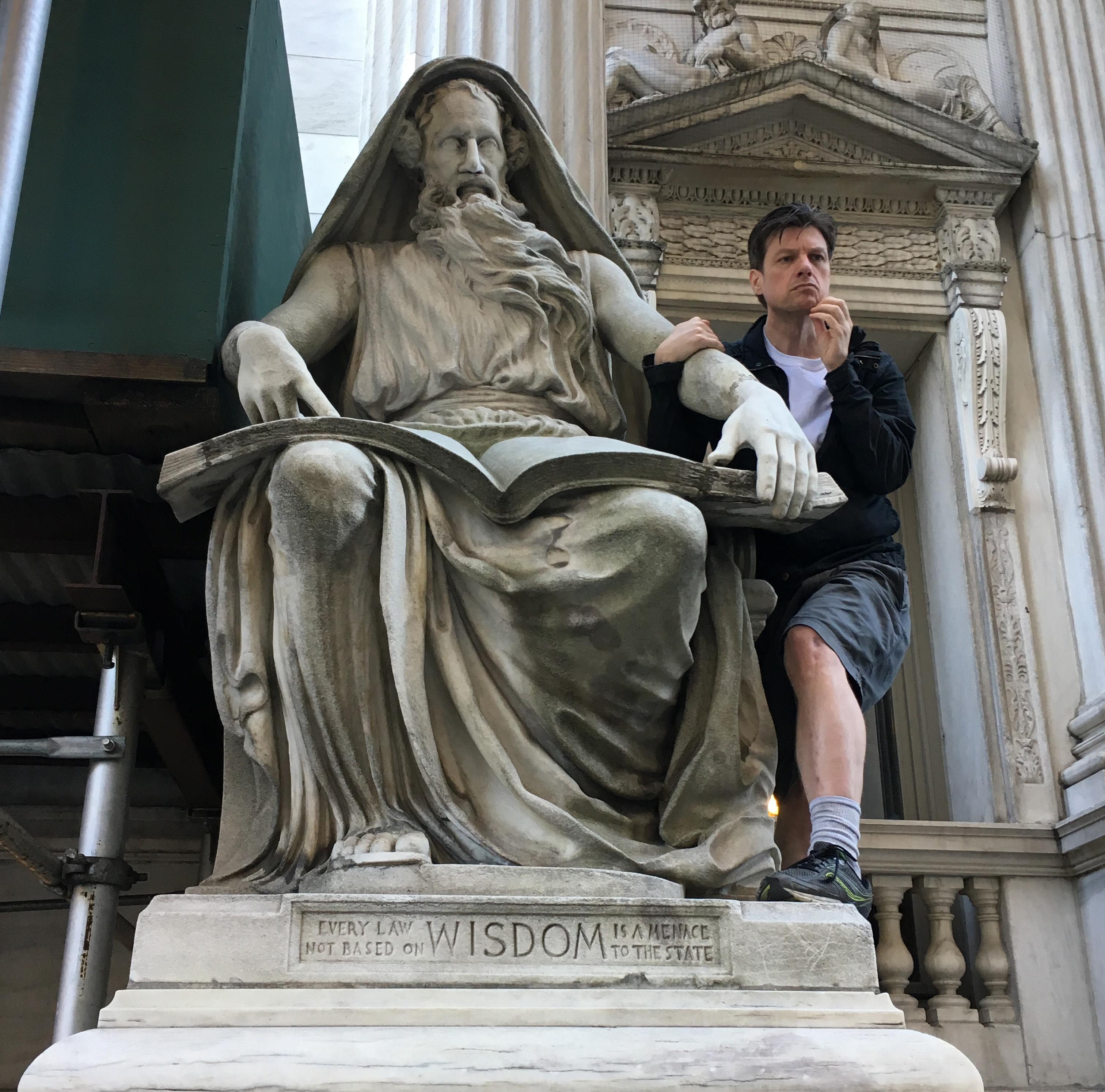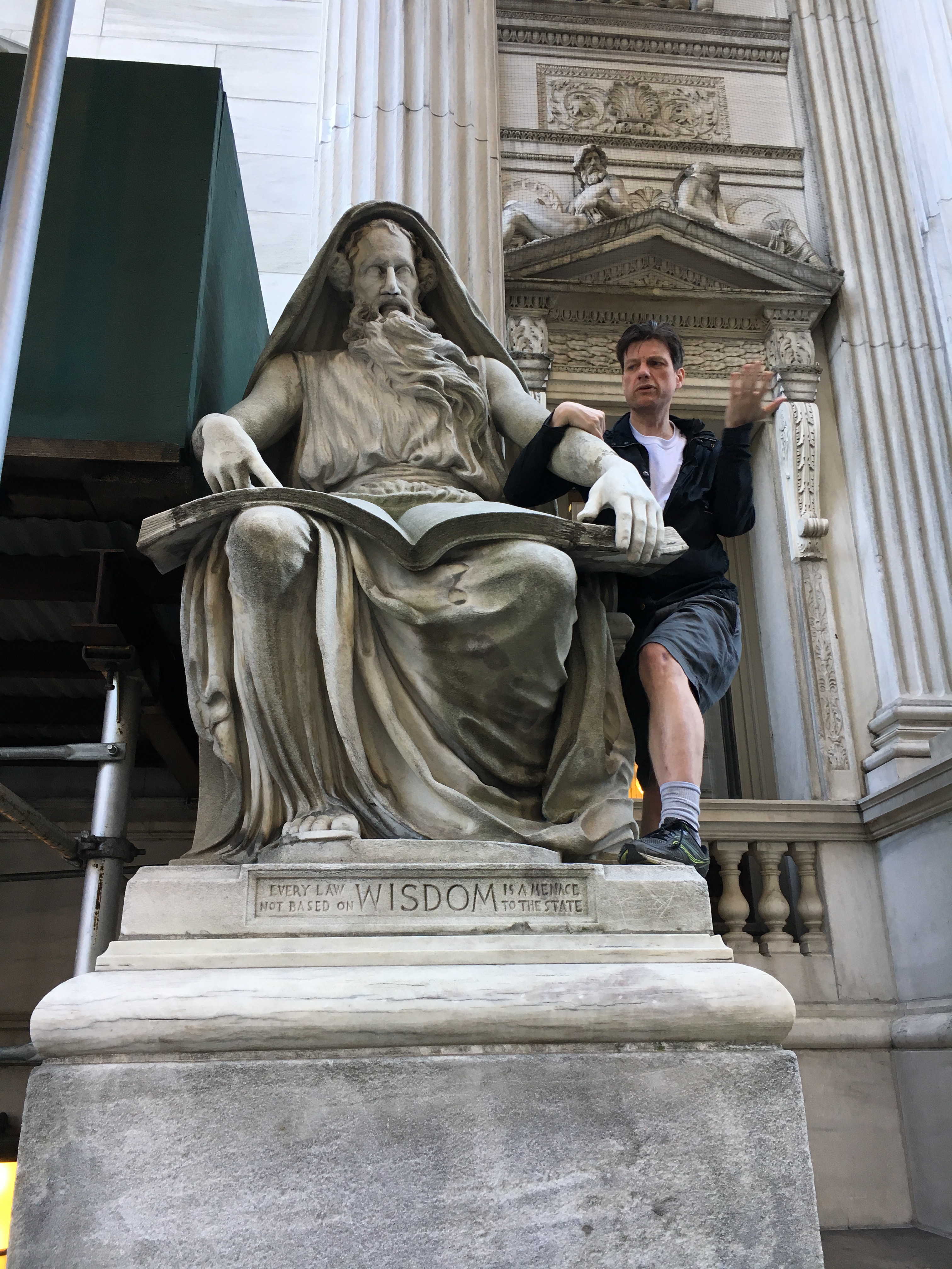 He emerges from the station at the former 43rd Street exit in Times Square, located next to the police station.