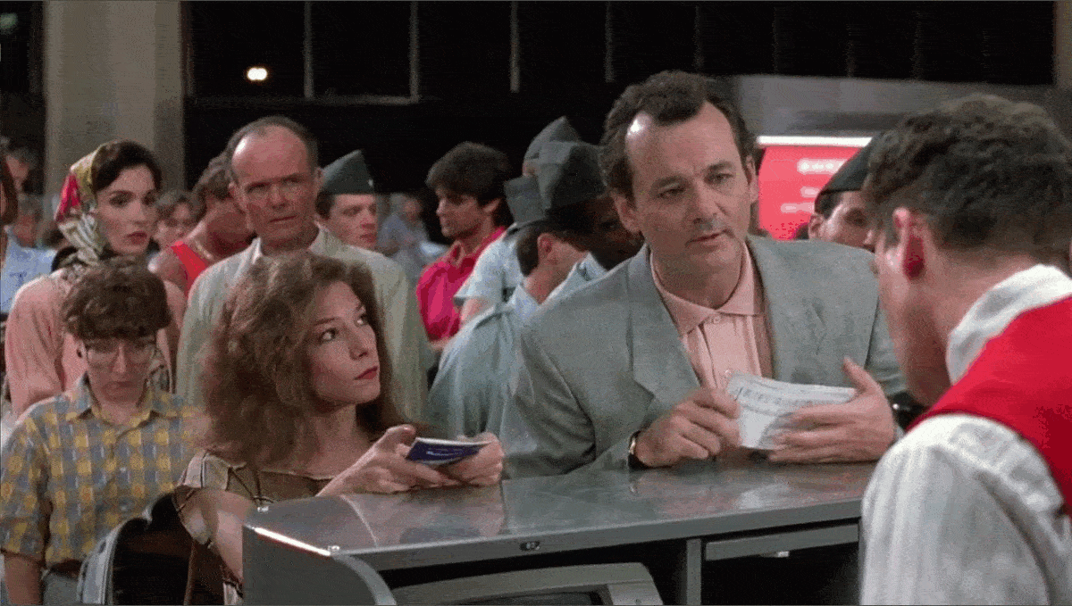 Loomis starts to freak out when he realizes the non-English-speaking cab driver doesn’t know where the airport is.