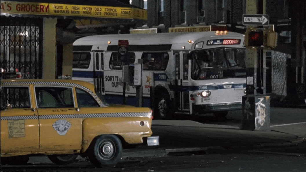 As soon as I saw a bunch of car dealerships out the bus’s windows, I took a guess that this scene took place in the Woodside area of Queens on Northern Boulevard which is sort of known for having a large concentration of dealerships.