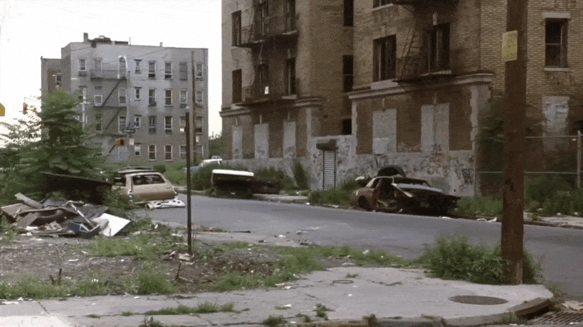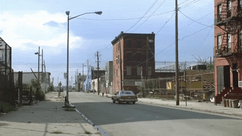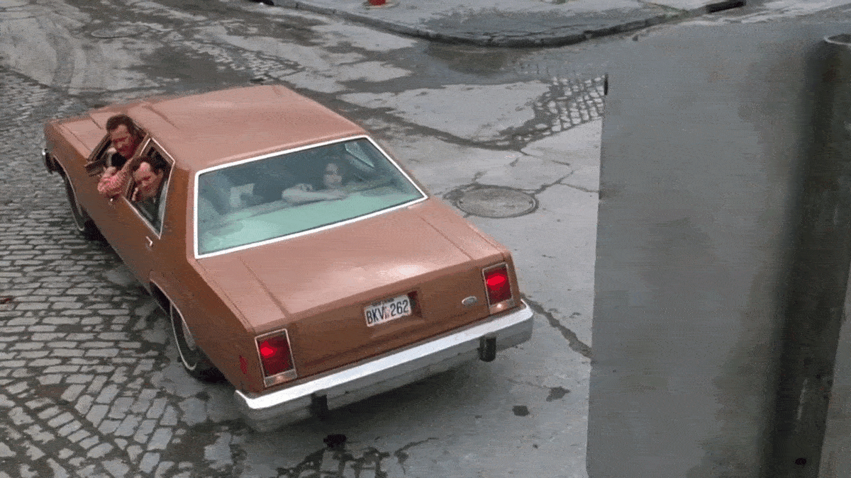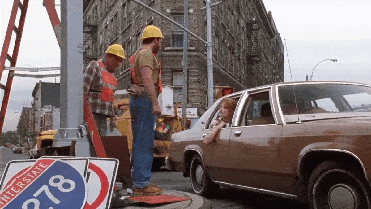 Lost, the gang drives around the Bronx (which is doubling for Brooklyn), heading south of Longfellow Avenue from West Farms Road, looking for the Brooklyn-Queens Expressway.