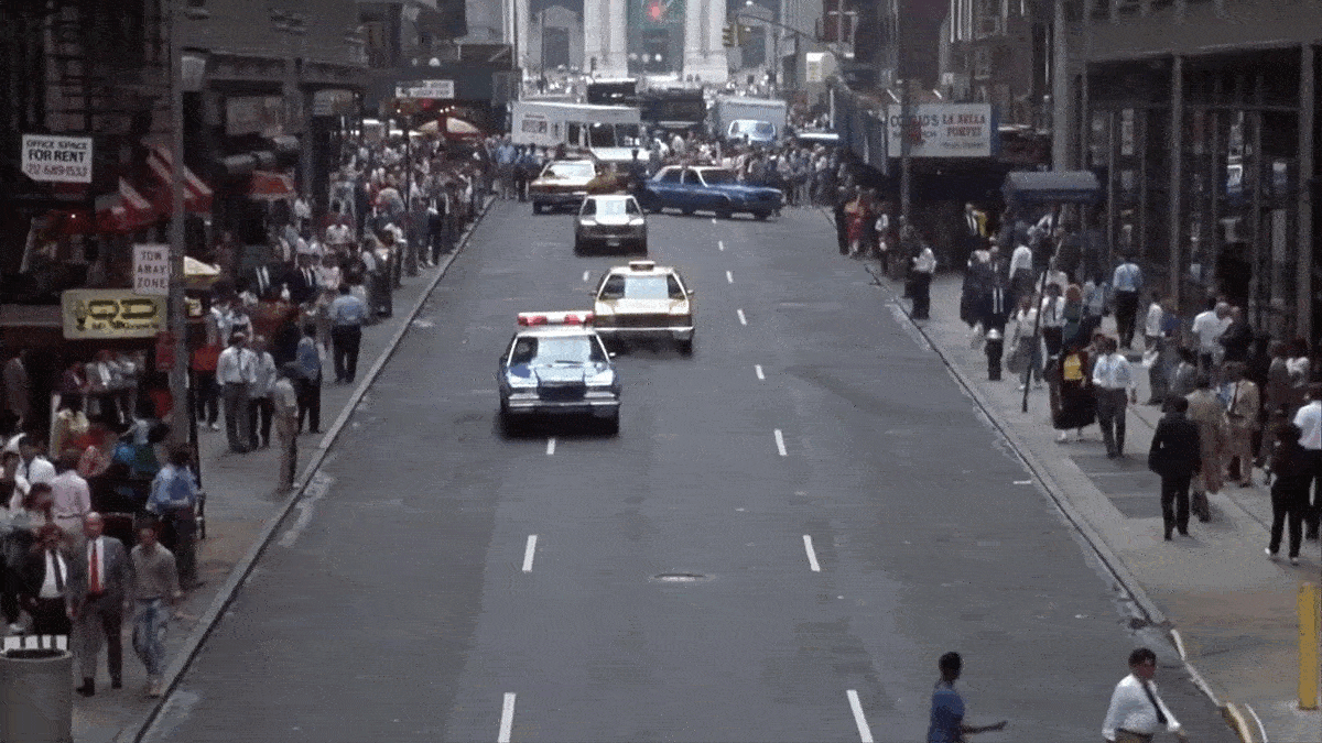 Another noticeable change to this area is in the stretch of road between the bank and Grand Central where Bill Murray first appears. This section of Park Avenue used to be a proper street open to vehicular traffic but has since been closed off and turned into a pedestrian-only plaza (completed around 2019).