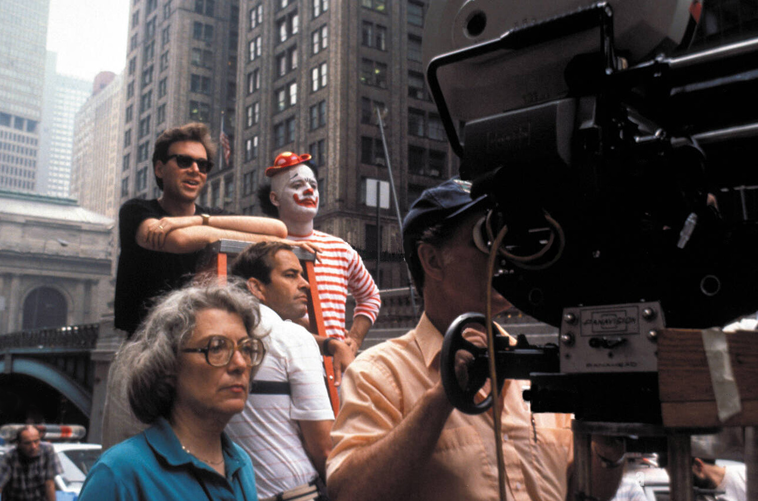 Murray and Franklin on Park Avenue, co-directing a scene from the extended bank robbery sequence.