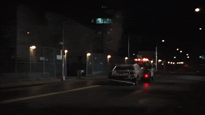 Still lost, Loomis backs the car up to where he thinks he saw a sign on the corner of Ferris and Coffey Streets in Brooklyn.