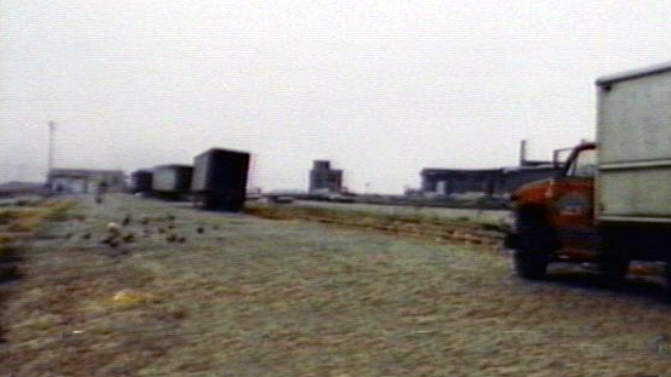 Once I was open to the idea of this scene taking place at a real location, I noticed something in the background that struck me as odd — some sort of metal tower and overhead metal trusses. Once I saw that, I almost immediately thought of the Brooklyn Navy Yard which I knew had that kind of apparatus on the grounds.