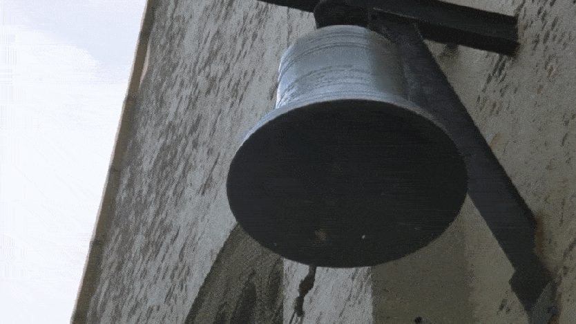 After a priest crosses himself, a young boy rings the bell on the church to indicate the joust is over.