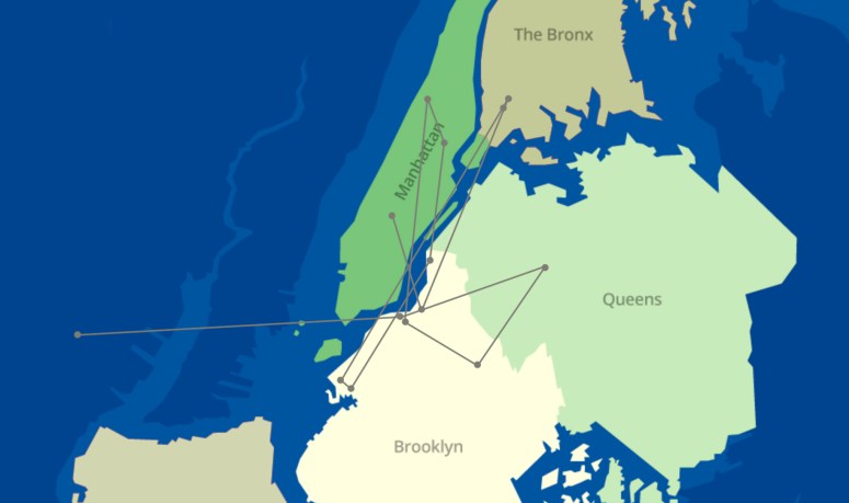 I basically looked through maps of any Brooklyn or Queens neighborhood that could’ve been used for this scene, searching for any intersection that had an acute triangular block. While I found a couple intersections that were similar (especially in Astoria and the Williamsburg/Greenpoint area), none of them were a perfect match.