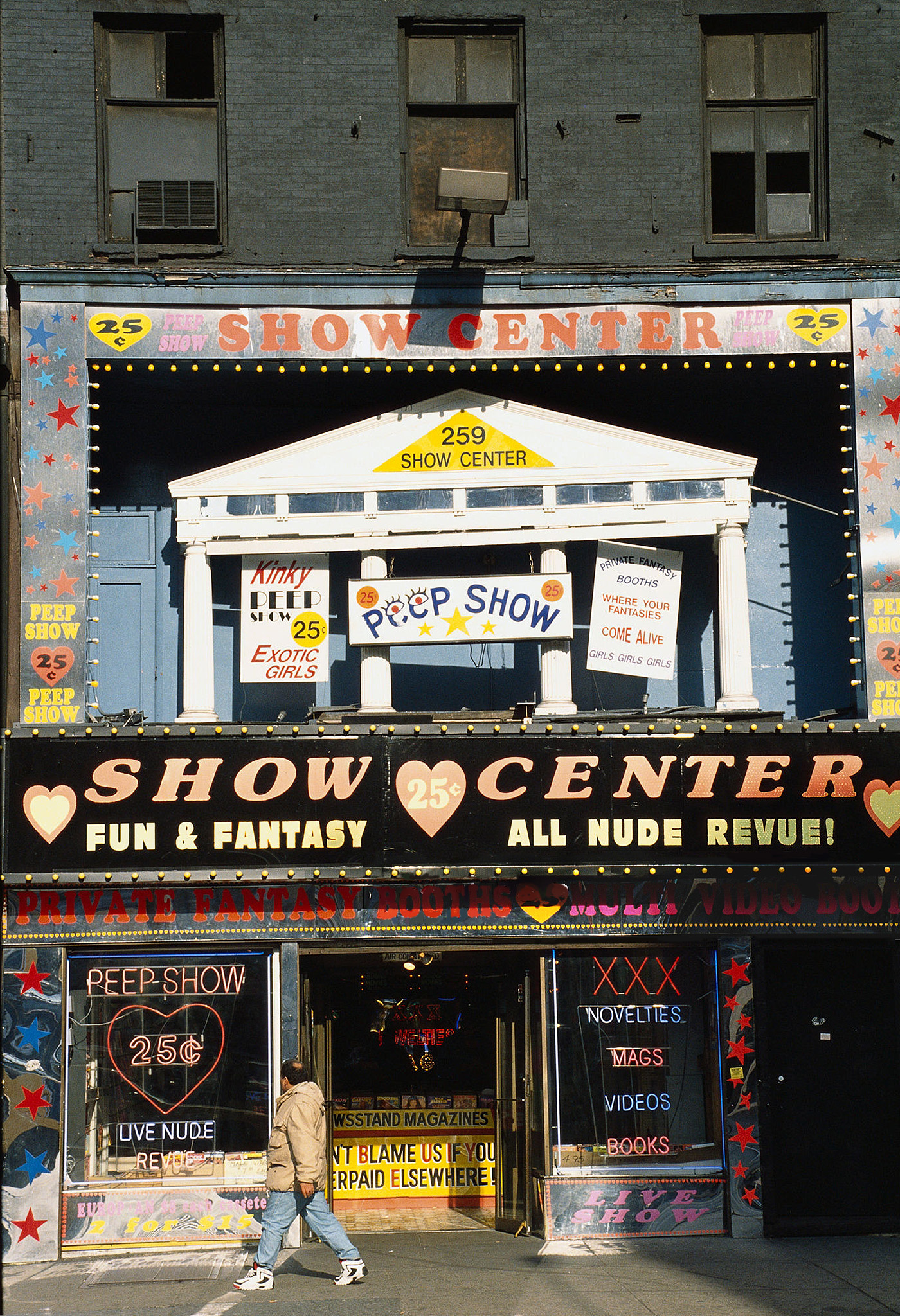One problem I kept encountering when I did Google searches for “Show Center” was getting results for “Show World Center,” which was a different place altogether, located at 669 Eighth Avenue. Amazingly, this adult shop was one of the last of its kind to survive the 1990s “Disneyfication” of Times Square, sticking around until 2018.