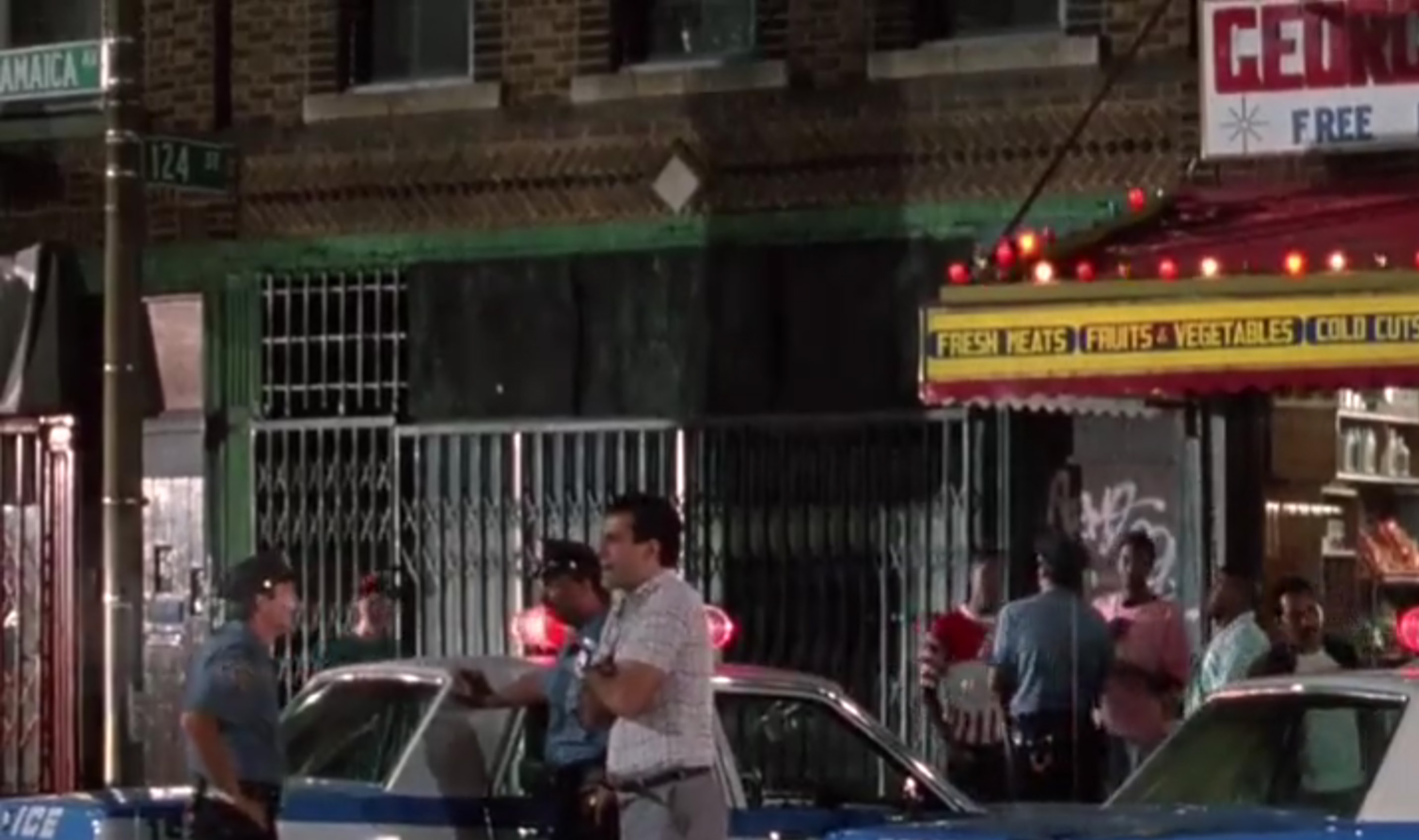 As the boisterous crowd yells at the cops, the cab driver returns and parks the car in front of 123-18 Jamaica Avenue.