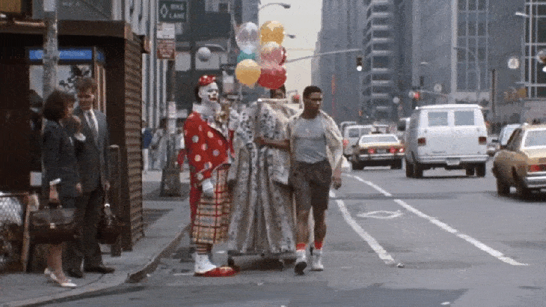 Bill Murray’s lesser known New York movie, Quick Change is part Dog Day Afternoon and part After Hours, where a trio of bank robbers desperately try to get from the heist to the airport before getting nabbed by the cops. Murray (who co-directed the film with screenwriter Howard Franklin) plays Grimm, a jaded city planner who holds up a bank dressed as a clown, and Geena Davis and Randy Quaid play bank customers who are really in on the plan. After successfully absconding with the cash strapped to their bodies, the three thieves spend the rest of the movie lost on the streets of New York.