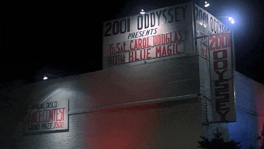 But before becoming a part of cinema history, the 2001 discotheque was a sparse, run-of-the-mill club in a mostly working-class neighborhood. While the clubs in Manhattan were all about money, fame and status, 2001 was more about the basics — getting drunk and getting laid. And when it was decided that Fever would film there, the art department knew they needed to spruce up the space, so they strung christmas lights everywhere and lined the walls with aluminum foil to give it a textured metallic sheen. But the biggest (and most expensive) improvement was the lighted, flashing Plexiglas floor which cost production around $15,000.