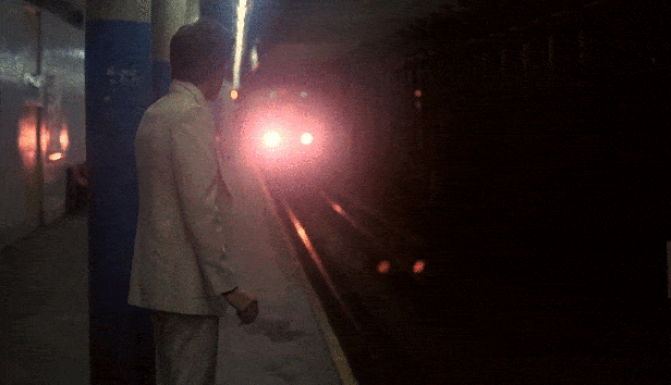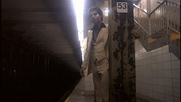 As to the actual locations used in this montage, even though there’s no signage visible, I’m pretty sure the first shot was filmed at the 53rd Street Station, which is also where Tony ends up a couple shots later, but just on the other side. What’s interesting is that the platform on the downtown side has round wooden columns, while the platform on the uptown side has squared metal columns, which is a convenient for a film crew to make it look like two different stations, or even two different subway lines.