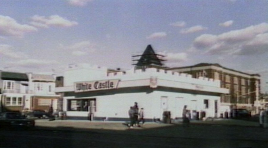 This eatery was already identified on several websites when I started researching this film, so there wasn’t much work involved. Although with the Verrazzano Bridge featured prominently in the background, I don’t think finding this location would’ve been too difficult. While it appears to be a coffeeshop in the movie, the place was actually a popular seafood restaurant called Fisherman’s Corner.